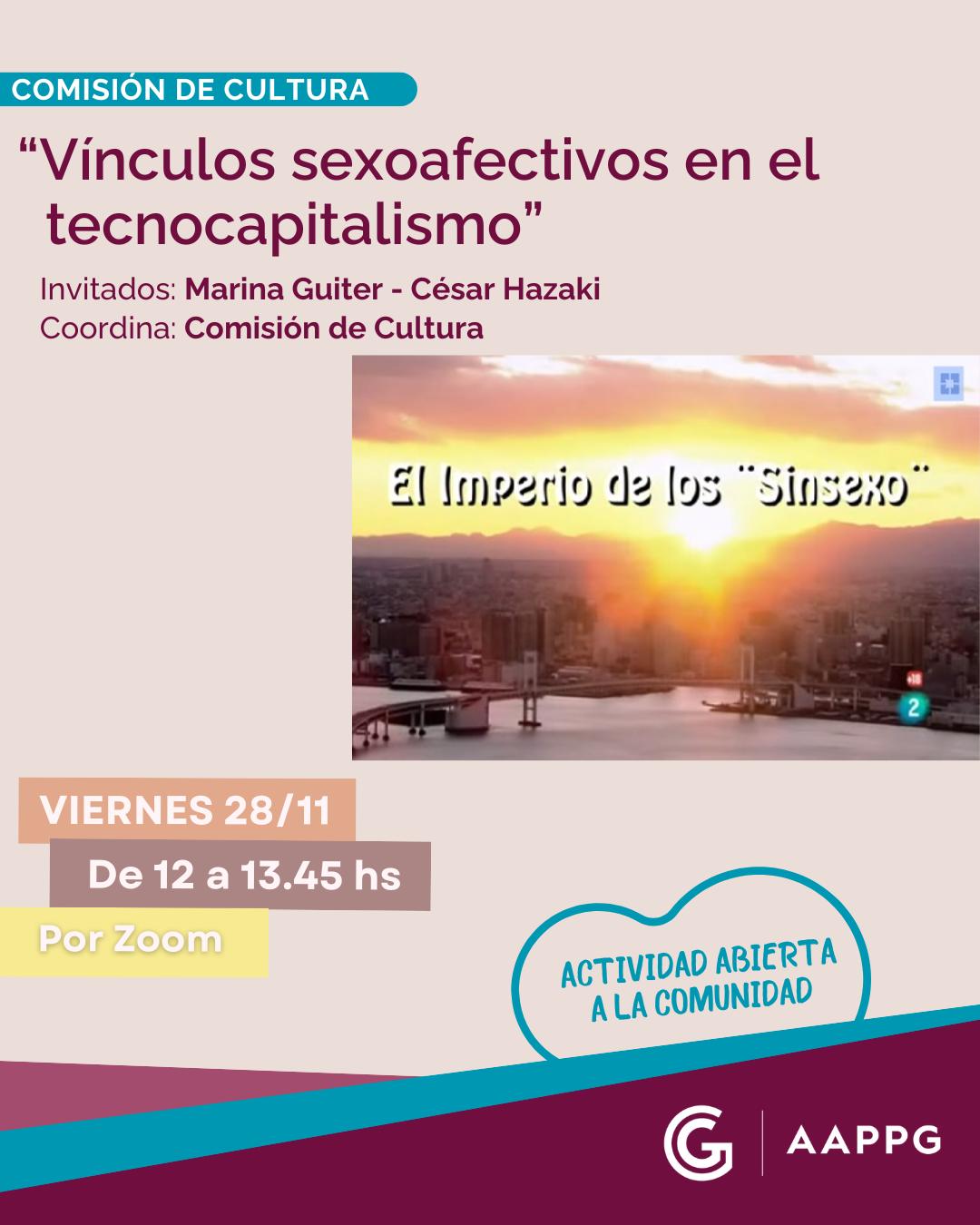 ✅ Presentan: Marina Guiter y César Hazaki (psicoanalistas)